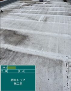 今回は既存防水を生かしながら、上からトップコートを塗布して防水性と耐候性を回復させる工法を採用しました。